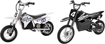 Razor products are in neighborhoods everywhere, but they don't stop where the sidewalk ends. With the Dirt Rocket line, Razor introduced off road rides for those who aren't afraid of the dirt. The Razor MX400 and the MX650 Dirt Rocket, are high performance, electric powered dirt bikes with authentic dirt bike frame geometry and Supercross inspired styling. The MX650 features a high torque powerful 650 watt electric motor, large 16 inch and 14 inch pneumatic knobby tires for maximum power transfer, shatter proof plastic fairings and fenders, dual suspension and speeds up to 17 miles per hour, and up to 40 minutes of continuous use, you'll be the king of the dirt hill. Can travel up to 10 miles on a single charge, speed up to 17 miles per hour and hold a rider up to 220 pounds. The MX400 comes with a high-torque, powerful 350-Watt electric motor, large 12-inch pneumatic knobby tires for maximum power transfer, speeds up to 14 miles per hour, and up to 30 minutes of continuous use (up to 10 miles on a single charge). The road (and the fun) doesn't stop where the sidewalk ends and your kid can explore it with the Razor MX400 and the MX650 Dirt Rocket.